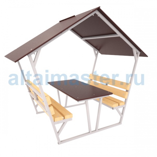 Для защиты от палящего солнца или дождя над столиком крепится навес.