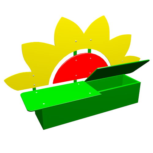 Предлагаем детскую скамейку в виде Цветочка. Она послужит не только украшением окружающего пространства и местом для отдыха, но и местом для хранения игрушек.