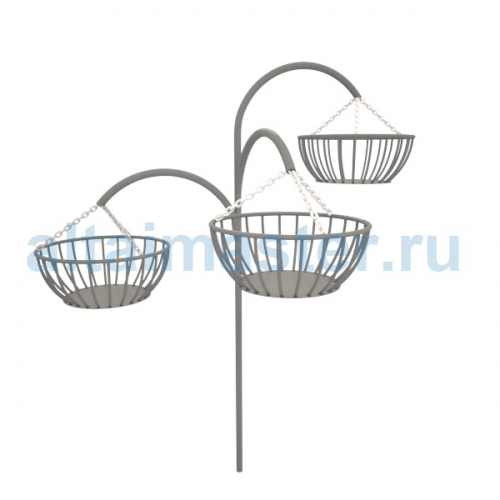 Вазон выполнен из прочных металлических труб с декоративными чашами в количестве 3-х штук на цепях.