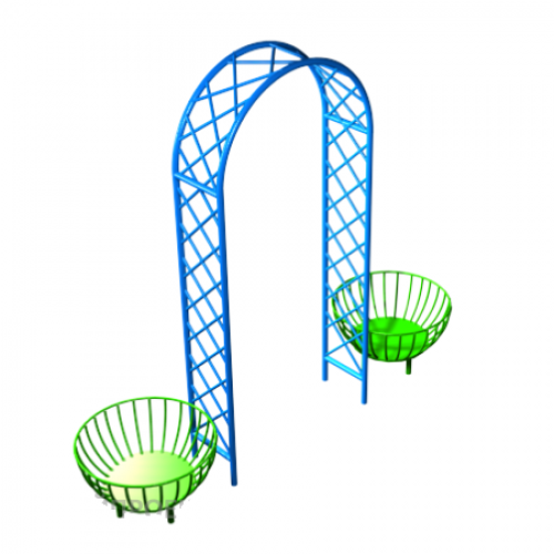 Входная арка выполнена из металлических труб квадратного или круглого сечения.