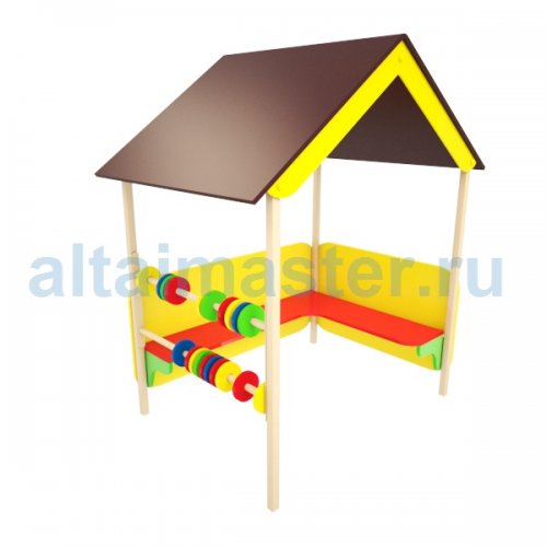 Основание: опорные стойки должны быть выполнены из металлической профильной трубы сечением не менее 40х40мм. Беседка с двух сторон должна закрываться накладками из влагостойкой фанеры толщиной не менее 15мм. Декоративные элементы на боковинах должны быть выполнены из влагостойкой фанеры толщиной не менее 9мм. Внутри беседки должны быть закреплены две скамейки из влагостойкой фанеры толщиной не менее 18мм. Игровой элемент «Счеты» должен быть выполнен из металлической трубы Ду не менее 20мм и влагостойкой фанеры толщиной не менее 15мм.