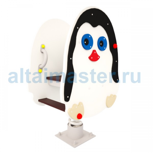 Каркас с сиденьем: каркас в виде пингвина и сиденья со спинкой должны быть выполнены из влагостойкой фанеры толщиной не менее 18мм. с поручнями и опорой для ног из металлической трубы Ду не менее 15мм.