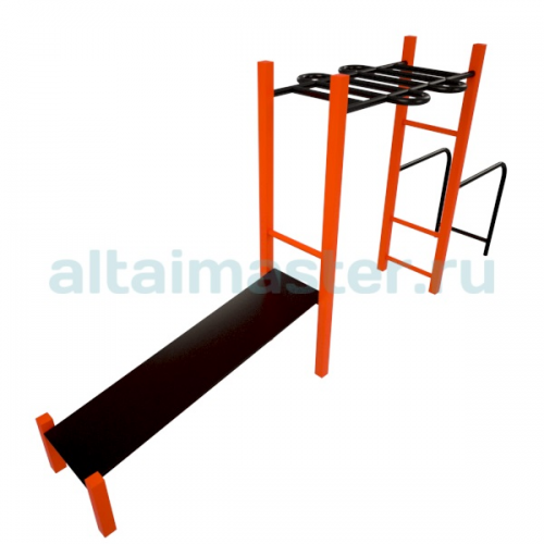 Брусья для отжиманий: должны быть выполнены из металлической трубы Ду не менее 25мм. Длина брусьев должна быть не менее 1200мм. Высота брусье долдны быть не менее 1200мм.