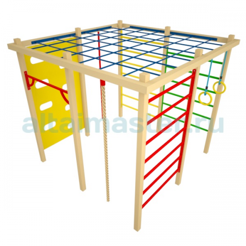 Спортивный элемент «Сетка»: каркас должен быть выполнен из металлической профильной трубы сечением не менее 80х80мм. Перекладины должны быть выполнены из металлической трубы Ду не менее 20мм.